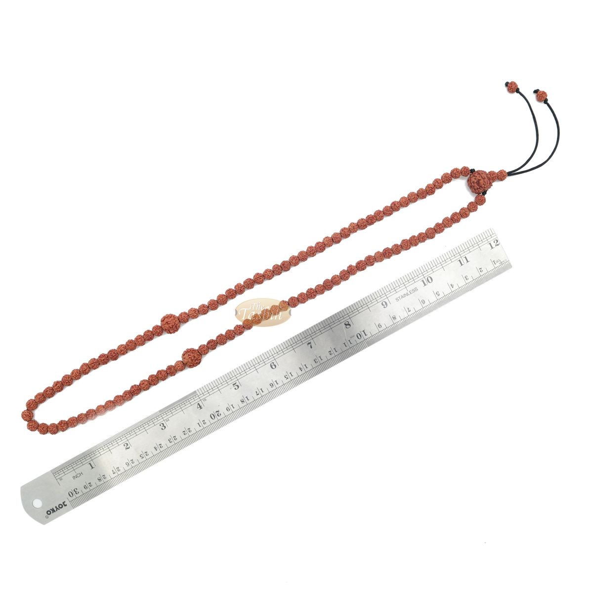 A small handcrafted 100% natural Muslim-style tasbih made from the Rudraksha tree (latin: Eliocarpus ganitrus) seeds. These tasbihs are crafted in Indonesia where the tree is called Jenitri. This tree is considered to have spiritual benefits and wearing the seeds is believed to offer healing properties for many ailments. The size of the seeds on this tasbih are 6.5 mm and it consists of 99 beads plus 2 13x11 mm dividers, a 15 mm alif bead and 2 slide-able 6.5 mm lock beads above the alif and 2 6.5 mm stop beads with 3-inches of extra string for personal modifications. Strung on durable 1.5 mm smooth black satin cord which is virtually unbreakable. No colors or dyes have been added, they come with their natural brown color. This seed is also nicknamed “blueberry seeds” as the fruit around the seed is usually a blue color. Note: This is a natural untreated product. Some slight variance in sizes, shapes and colors of the beads as well as minor imperfections are to be expected.